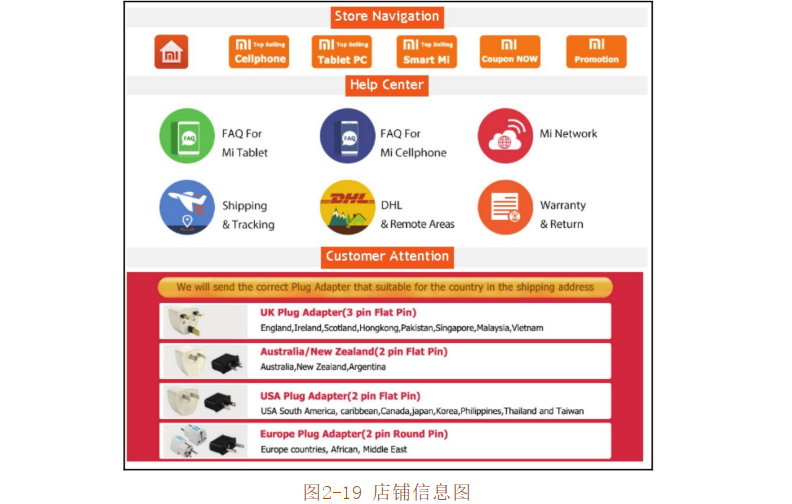 (5)店鋪信息圖。這里可以放置一些和產(chǎn)品本身關(guān)系不大,但是和交易有關(guān)的信息。比如付款方式、物流方式、公司介紹、公司實(shí)拍圖、FAQ等,如圖2-19所示。