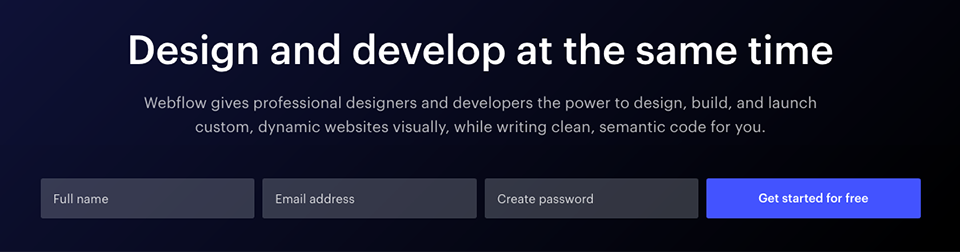 Webflow則直接把需要填寫的注冊(cè)項(xiàng)全列出來(lái),這適用于注冊(cè)項(xiàng)在三個(gè)以內(nèi)的情況: