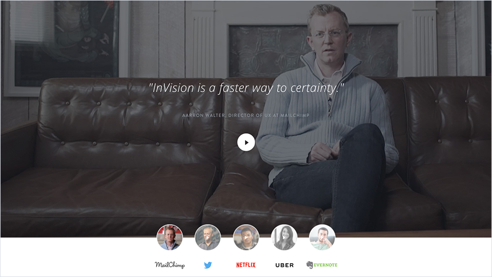 越來(lái)越多的公司已經(jīng)不滿足于靜態(tài)講故事,例如Invision,他們開始使用更專業(yè)、更有說(shuō)服力的采訪短片來(lái)作為客戶成功案例:
