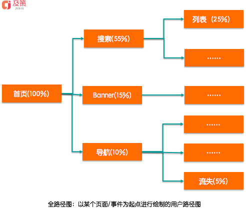 全路徑圖,以某個(gè)頁面/事件為起點(diǎn)進(jìn)行分析的路徑圖。抽象圖中的元素,即為: