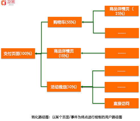 轉(zhuǎn)化路徑圖,以頁面/事件為終點(diǎn)進(jìn)行分析。下面談?wù)勣D(zhuǎn)化路徑圖的作用: