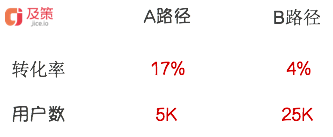 A路徑轉(zhuǎn)化率明顯高于B路徑,能否將分配給B路徑的流量導(dǎo)向A路徑?