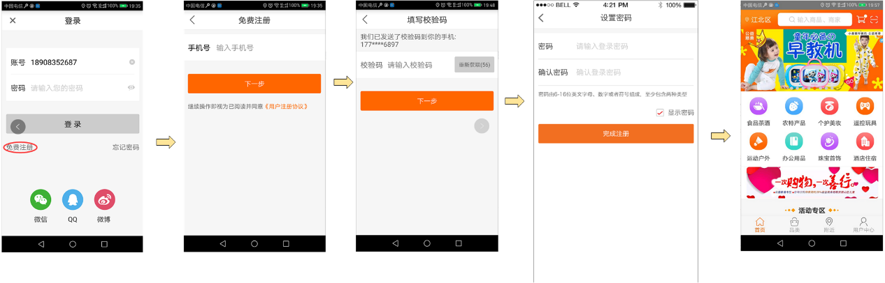 輸入校驗(yàn)碼:當(dāng)手機(jī)收到短信后,APP能夠自動識別和讀取短信中的驗(yàn)證碼,可減少用戶輸入驗(yàn)證碼的操作