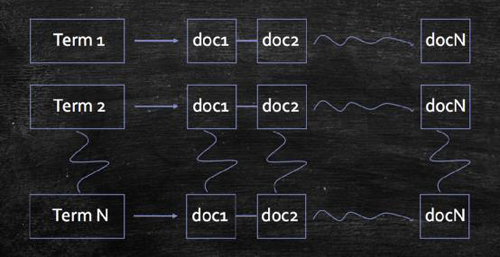 Step2:terms在倒排索引中的詞項列表中查找對應的terms的結(jié)果列表;