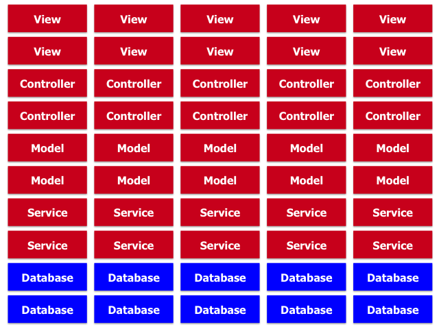 滿足這個條件的架構在初期是非常令人愉悅的。上一部分我們描述的框架都符合這種架構。這個階段開發(fā)非常快:IDE打開很快,開發(fā)功能完成很快,團隊這個時候往往規(guī)模較小,交流也沒有問題。所有人都很高興——因為用了新技術,因為這個架構是如此的簡單、清晰、有效。