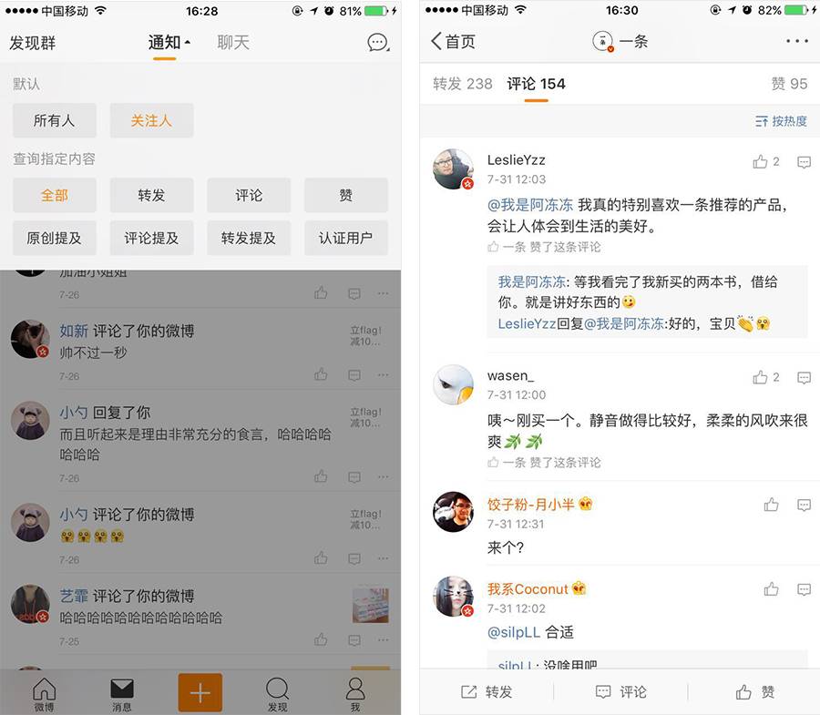 此外,內(nèi)容消費型用戶,在社區(qū)的持續(xù)使用過程中也會產(chǎn)生被激勵的訴求,通過諸如評論等較低門檻的內(nèi)容生產(chǎn)機制,可以為消費型用戶創(chuàng)造被認同激勵和互相交流的契機。如,微博利用評論點贊功能刺激內(nèi)容消費者表達觀點,并利用評論點贊和回復的總和熱度排序露出優(yōu)質(zhì)用戶。