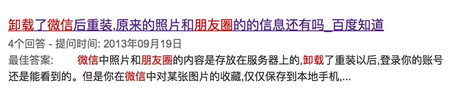 用戶消費的內(nèi)容越多、生產(chǎn)的內(nèi)容越多,他持續(xù)使用應用的收益和動力便會遞增,相應的離開損失也會遞增,比如微信朋友圈雖然可卸載關(guān)閉,但重新打開率非常高,用戶離開后損失也很高,百度上可以查到很多如下的類似問題: