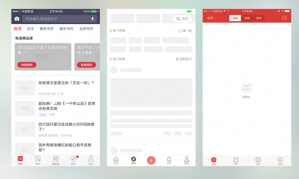 使用場景:當(dāng)用戶第一次打開應(yīng)用時或刷新時,肯定會有一個數(shù)據(jù)加載的過程,對于用戶來說,這就是產(chǎn)品的第一印象。有時候數(shù)據(jù)加載速度非??炜梢院雎约虞d頁的存在,但是考慮有些使用場景,用戶還是會看到加載頁面,像之前體驗(yàn)的一款競品,剛打開的時候除了頂部導(dǎo)航欄和底部標(biāo)簽欄,所有東西都是空白,正好那時候是在網(wǎng)絡(luò)環(huán)境非常差的情況下,用戶心理預(yù)期肯定覺得這個產(chǎn)品不是很靠譜。