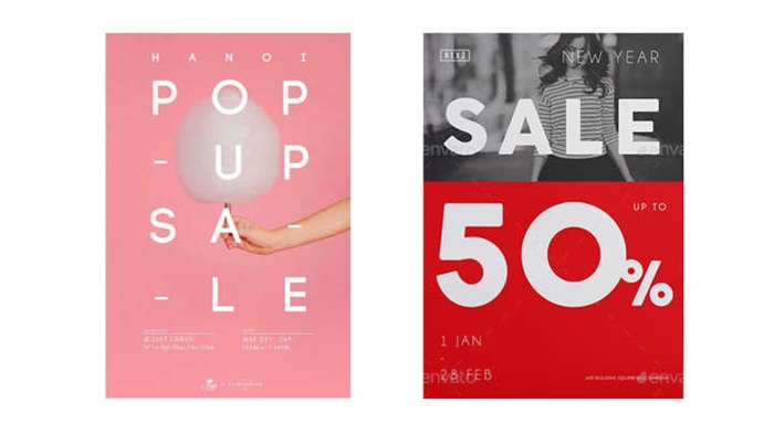 然而,從本質(zhì)上來看的話,設(shè)計和藝術(shù)卻是非常不同的。他們的目的不同,藝術(shù)的目的是自我表達,網(wǎng)站建設(shè)前端設(shè)計的目的是解決問題。他們的受眾不同,藝術(shù)的受眾是所有人,但是每個人對藝術(shù)作品都可以有自己獨特的理解,其理解是否和藝術(shù)家想表達的一致并不太重要,而設(shè)計的受眾往往是一個特定的群體,需要受眾對設(shè)計作品想要傳達的信息進行正確的解讀。所以,藝術(shù)手法在海報中僅當(dāng)必要的時候才會使用,而當(dāng)我們要做讓人一目了然的促銷海報時,藝術(shù)手法往往會讓人摸不著頭腦。請比較下面兩幅促銷海報,哪幅海報讓你一眼就知道打折了呢?