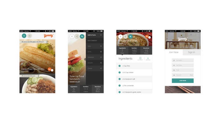 下面這張圖是我在大約 4 年前「照抄」的Yummly App,一款出生于美國的美食應(yīng)用。你會發(fā)現(xiàn)圖片被換成了油條、酸辣湯等中國特色食物,標(biāo)題文案也根據(jù)圖片做了相應(yīng)的修改,但是其他的設(shè)計都力求做到了一模一樣。