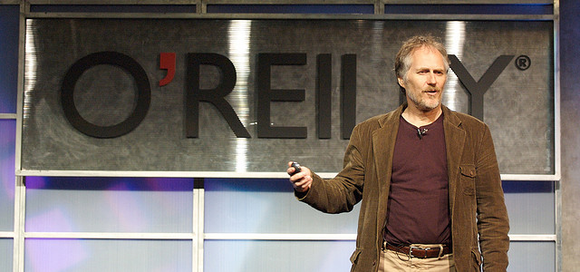 來認(rèn)識一下這位將Web 2.0和開源的概念引入我們生活的大神吧,他就是Tim O’Reilly。我想你對他的姓更熟悉,對,他就是著名的O’Reilly Media 的創(chuàng)始人,這個為技術(shù)人員和互聯(lián)網(wǎng)從業(yè)者所熟知的公司是最著名的網(wǎng)絡(luò)開發(fā)、設(shè)計和技術(shù)圖書與內(nèi)容的發(fā)行商。如果你碰到任何一本白底動物封繪的技術(shù)/設(shè)計類圖書,那九成九就是O’Reilly出版的圖書。
