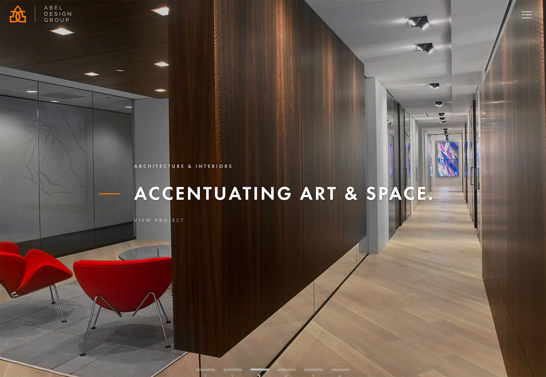 Abel Design Group 這個(gè)網(wǎng)站中,設(shè)計(jì)師并沒有直接采用傳統(tǒng)意義上的下劃線,而是使用橙色的線條置于文本前方,起到了和下劃線相似的功用。