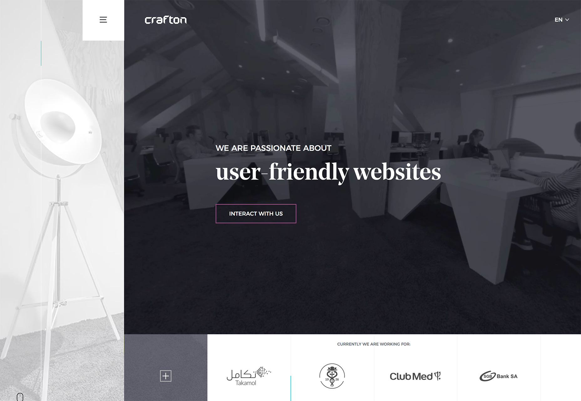 就像下面的 Crafton 這個(gè)網(wǎng)站,稍稍加入一點(diǎn)紅色,就讓整個(gè)設(shè)計(jì)一下子鮮活了起來。