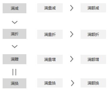 而這么多活動(dòng)規(guī)則如何有序的在購物車進(jìn)行聚合展示呢?除了每個(gè)網(wǎng)站固有的分級(jí)策略外,一般的活動(dòng)優(yōu)先級(jí)展示是這樣的: