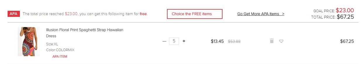 如果后臺(tái)配置的是滿贈(zèng)活動(dòng),這里就會(huì)提示”You have a chance to get this items for free”,同時(shí)按鈕文案也會(huì)變成 “See the free items”,里面的規(guī)則說明也會(huì)相應(yīng)變化。