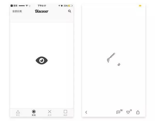 左側(cè)的開眼APP,將自己的logo進行變換,仿佛一個眼睛在轉(zhuǎn)啊轉(zhuǎn);右側(cè)的好奇心日報APP,用鉛筆和橡皮擦,將自己的品牌字母Q,進行手寫和擦除。這種形式不僅增加了loading的趣味性和設(shè)計感,同時還達到了強化品牌的效果,大家可以借鑒使用。