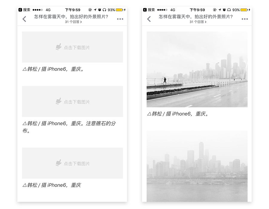 同理,當檢測到用戶正在使用蜂窩數(shù)據(jù)時,則顯示占位符而不顯示圖片,當使用WiFi時則直接加載出圖片。這些設(shè)計方案都是站在用戶的角度,替用戶著想,為用戶帶來價值,用戶才會真正喜歡上你的產(chǎn)品。