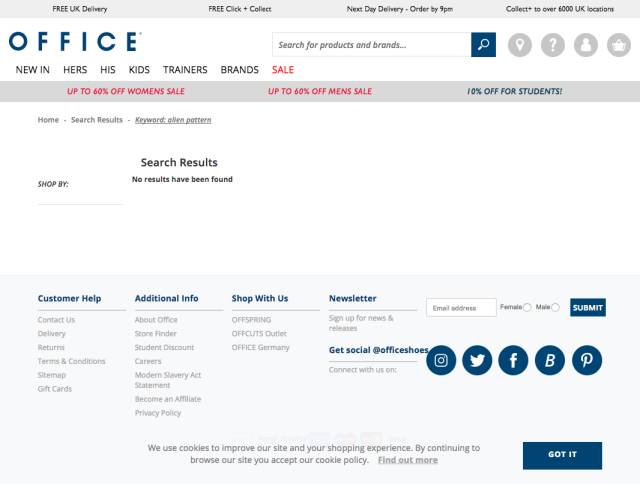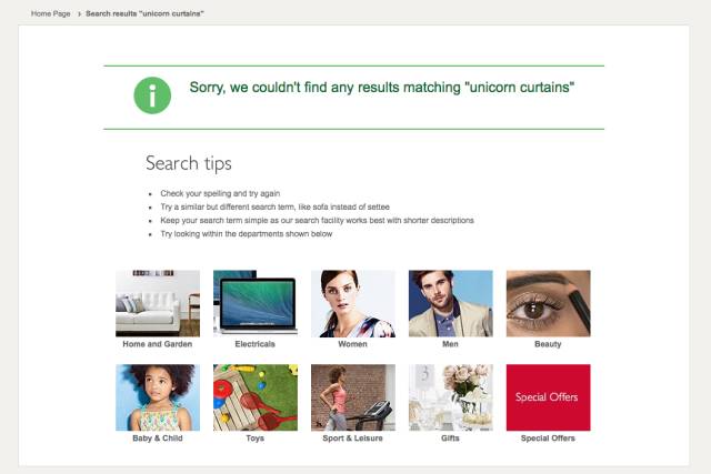 即便聯(lián)系信息已經(jīng)在網(wǎng)站上其他地方展示了(通常埋在頁腳),用戶可能并不會去尋找。只要合適,“無結(jié)果”頁面是最理想的、突出此類信息的地方。