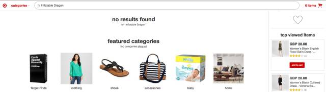 當Target的網(wǎng)站上搜索無結(jié)果時,它用這空間展示熱門分類和最受歡迎的商品