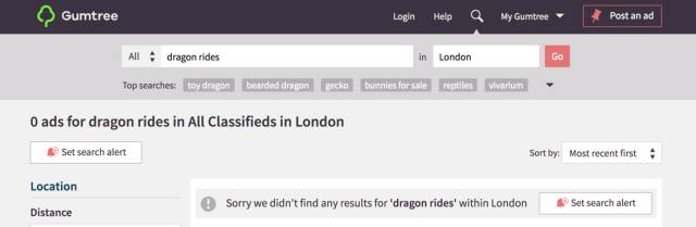 Gumtree 在搜索無結(jié)果頁面明顯展示搜索提醒的功能。