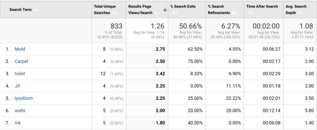 大多數(shù)企業(yè)會定期監(jiān)控他們的網(wǎng)站數(shù)據(jù)?;仡櫅]有返回結(jié)果的檢索關(guān)鍵詞,應該也是定期監(jiān)控中的一項。額外設置一下 GoogleAnalytics,你可以得到一個站內(nèi)搜索行為的整體報告。仔細分析用戶正在搜索什么,可以幫助我們識別內(nèi)容上的缺失。用戶對某個內(nèi)容的搜索數(shù)據(jù),也可以為增加該內(nèi)容提供商業(yè)依據(jù)。