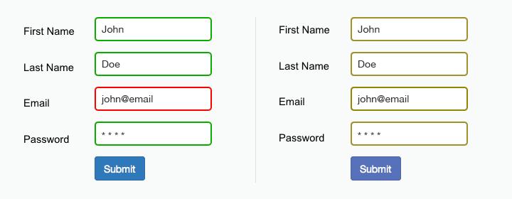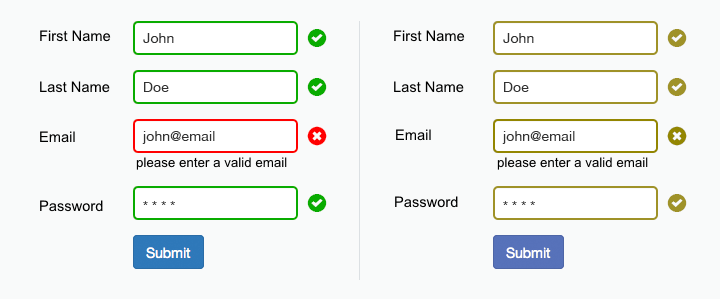 不好:這種形式僅僅依靠紅色和綠色來(lái)表示字段有沒(méi)有錯(cuò)誤。色盲用戶(hù)是無(wú)法識(shí)別的。