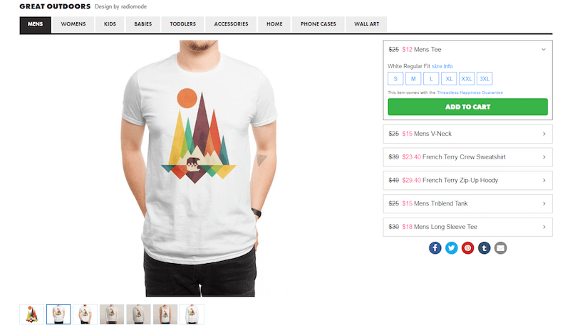 考慮兩個(gè)例子 – 第一,Threadless,一個(gè)流行的T恤店。這個(gè)頁(yè)面并沒(méi)有多少關(guān)于正在銷(xiāo)售的商品的信息 。唯一可用的文本信息是價(jià)格和大小的組合。