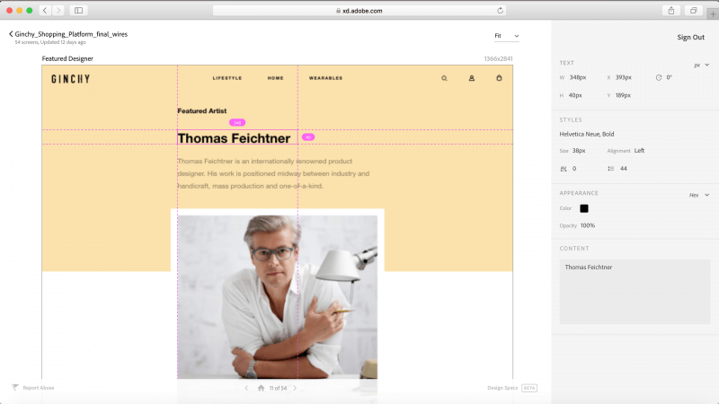 借助Adobe XD的設(shè)計(jì)規(guī)范功能(測(cè)試版),設(shè)計(jì)人員可以為開(kāi)發(fā)人員發(fā)布一個(gè)公開(kāi)的鏈接。通過(guò)鏈接,開(kāi)發(fā)人員可以檢查,測(cè)量和復(fù)制樣式。設(shè)計(jì)師不再需要花時(shí)間編寫(xiě)規(guī)范來(lái)向開(kāi)發(fā)者闡述位置,文本樣式或字體。