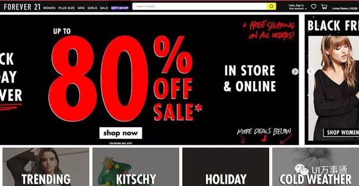 相比之下,如果將首屏的輪播圖替換成單個首圖,并且搭配上CTA按鈕,效果會好很多。用戶不再會被多個首圖進(jìn)行信息轟炸,而單一的選擇給用戶的路徑也更為清晰直觀。