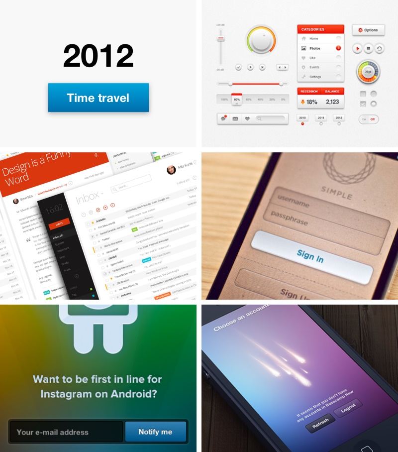 2012 年,擬物化風(fēng)格趨勢下降,扁平化風(fēng)格趨勢開始出現(xiàn)。這一年是擬物化風(fēng)格發(fā)展最快的一年,很多設(shè)計師在這種風(fēng)格上達到了很高的水平。同時,有些設(shè)計師開始尋找一些新的東西。