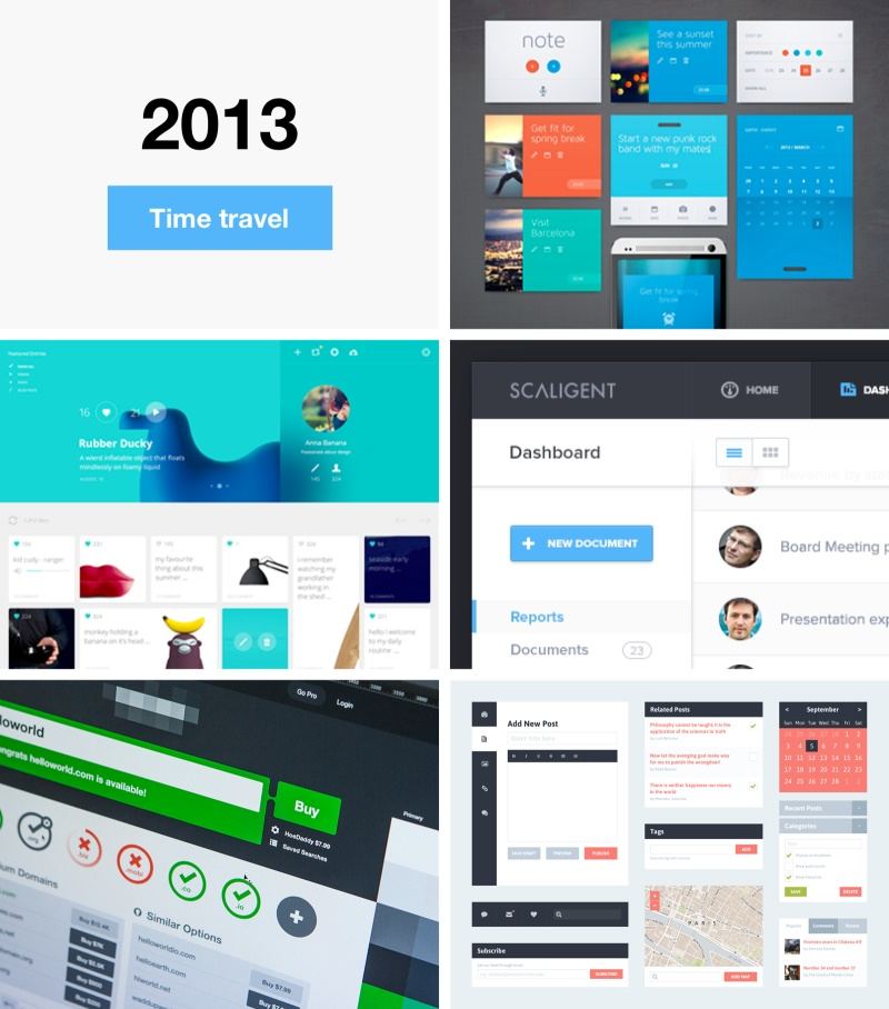 2013 年,Apple明確的將擬物化使用在iOS7 上。毫無疑問的,這一年也出現(xiàn)了新的設(shè)計趨勢——扁平化設(shè)計。幾乎 Dribbble上每一個獨立的設(shè)計師,在同一時間放棄了在其App或者Web頁面上使用三維的按鈕,轉(zhuǎn)而使用扁平化設(shè)計。