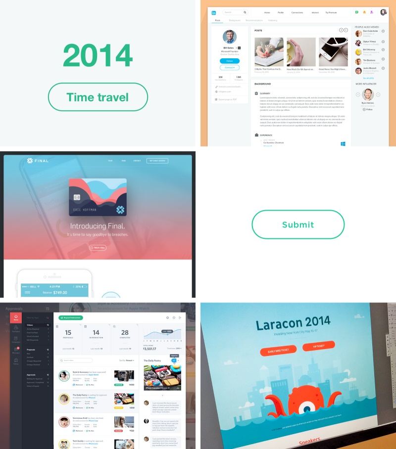 在谷歌發(fā)布了Material Design的幾個月后,UI設(shè)計師們很快地喜歡上了這種風(fēng)格。扁平的按鈕下方增加了微小的陰影。 很多設(shè)計師將這種風(fēng)格應(yīng)用到項目中就能證明這種風(fēng)格對設(shè)計趨勢的重大影響。