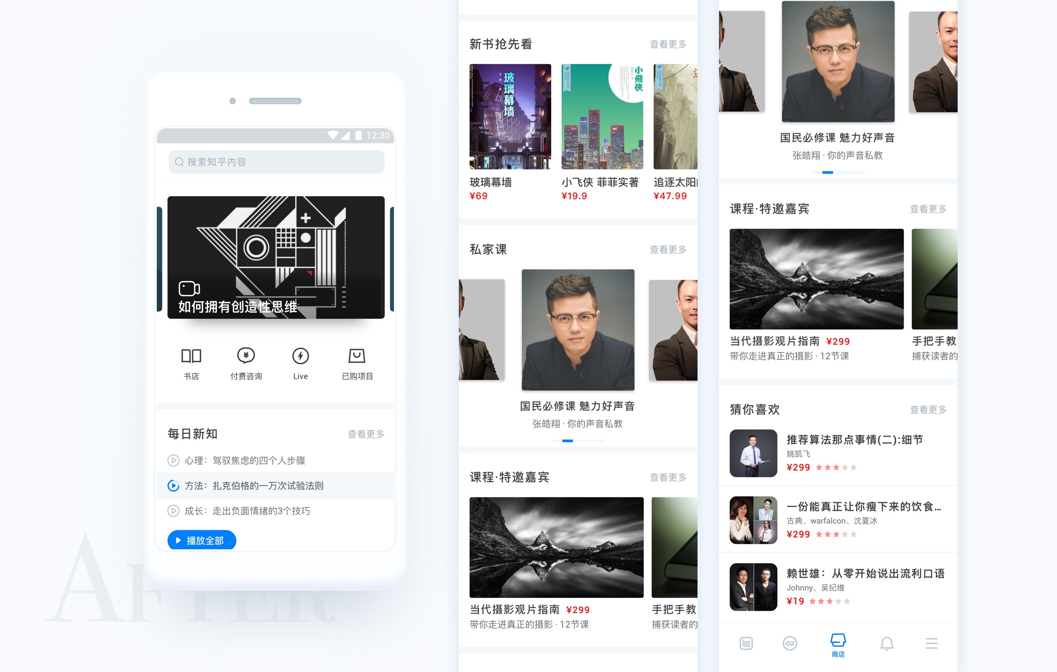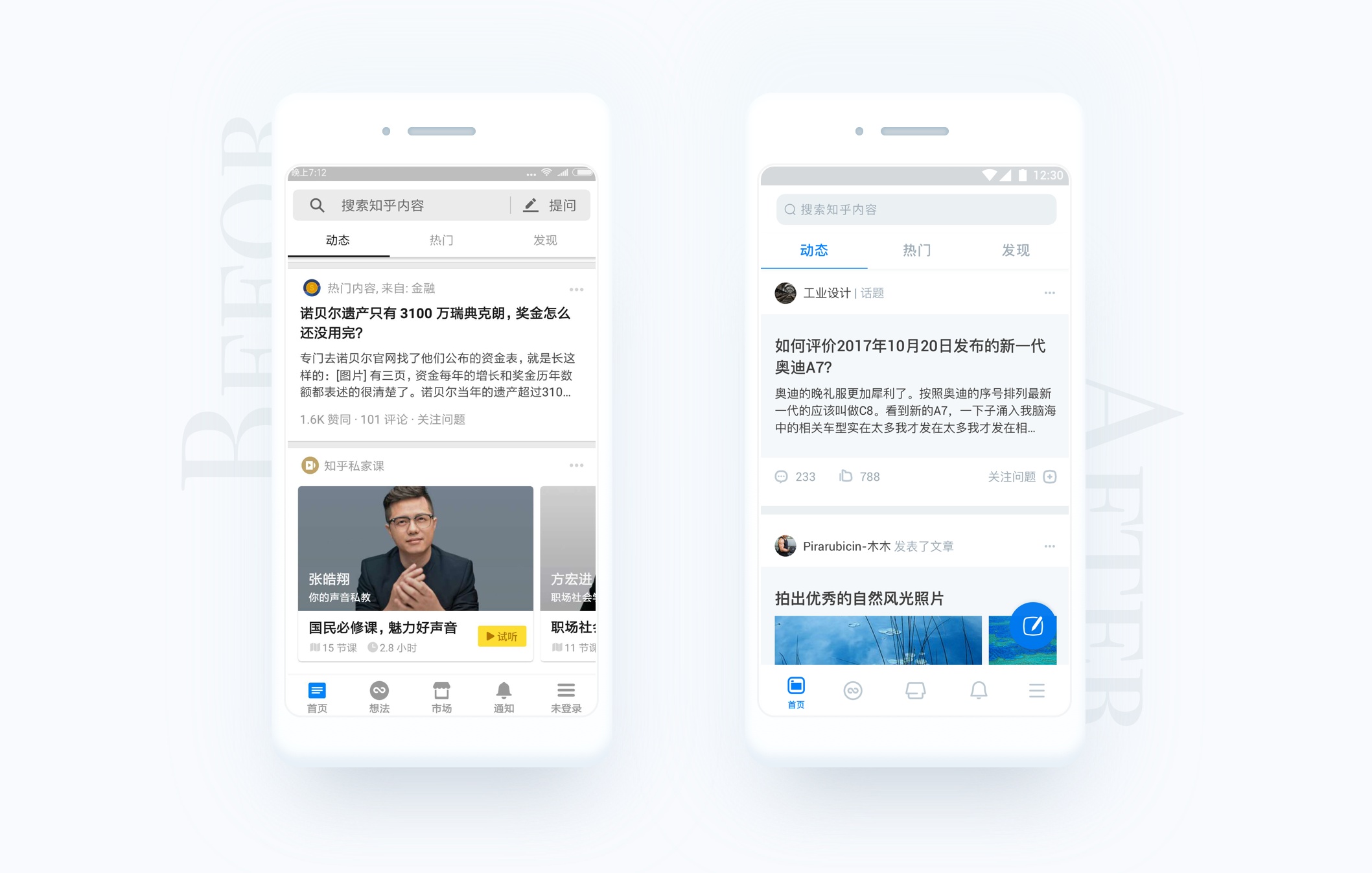 專欄和話題用統(tǒng)一的樣式。收藏夾和圓桌根據(jù)各自所承載的信息的不同,為它們?cè)O(shè)計(jì)了不同的樣式。在專欄和話題中加以分割。