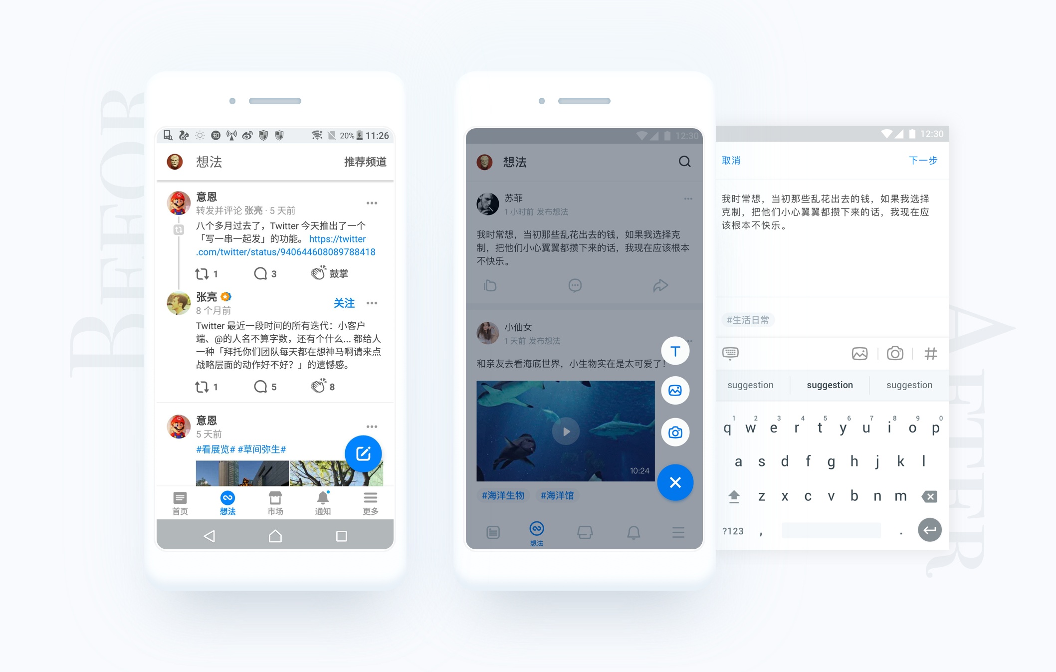 翻了很久的想法,大部分人在使用話題時(shí)并并不會(huì)連接上下語境,甚至知乎也他作為標(biāo)簽放在正在討論。所以用標(biāo)簽代替話題似乎是可行的的,同時(shí)界面中也不會(huì)有太多的藍(lán)色顯得到處都可點(diǎn)擊。