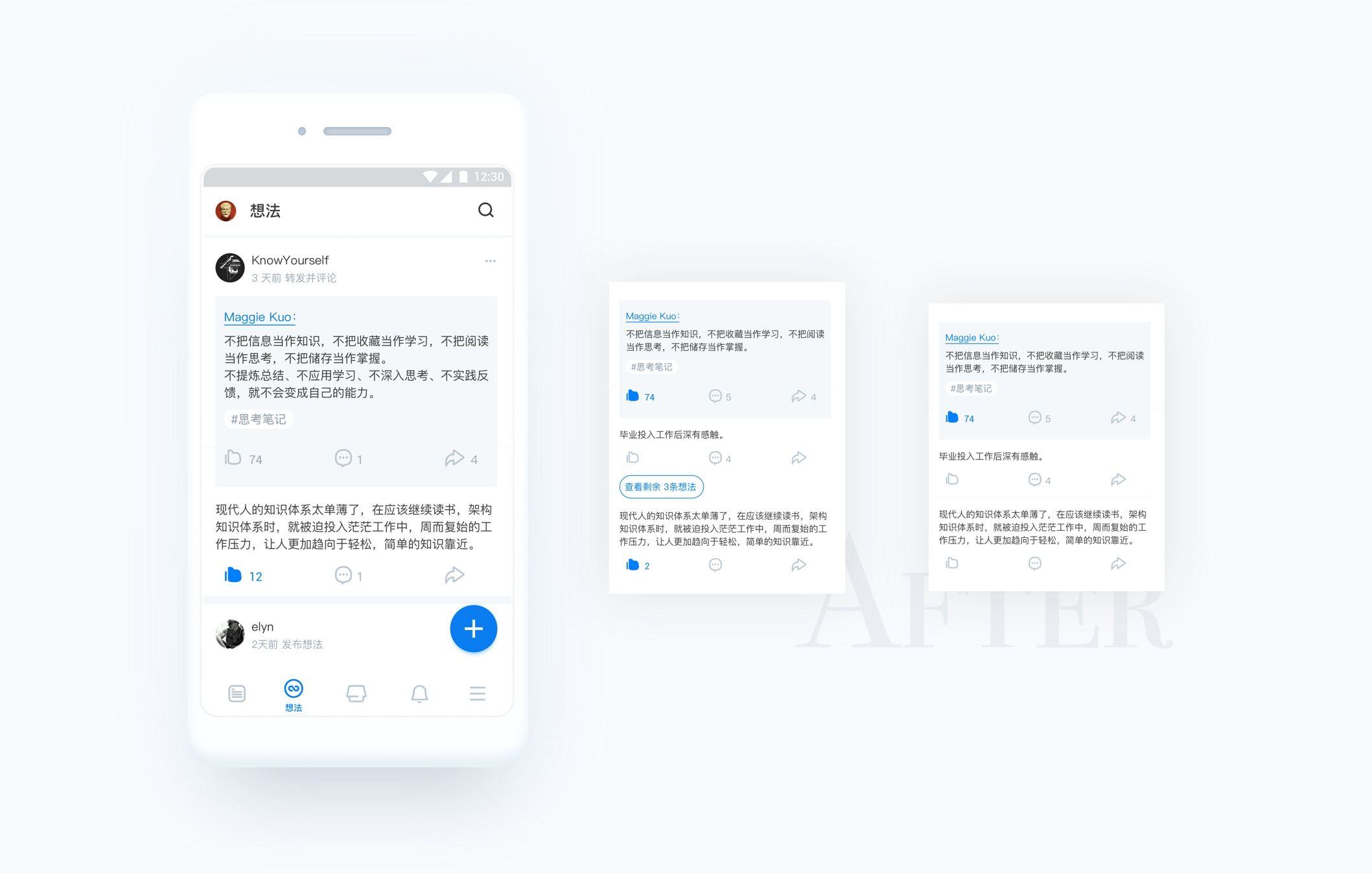 將原來話題改為標(biāo)簽,話題穿插在文本中影響閱讀。單獨(dú)提取出來也更方便辦用戶根據(jù)自己感興趣的標(biāo)簽點(diǎn)擊查看更多同屬性內(nèi)容。
