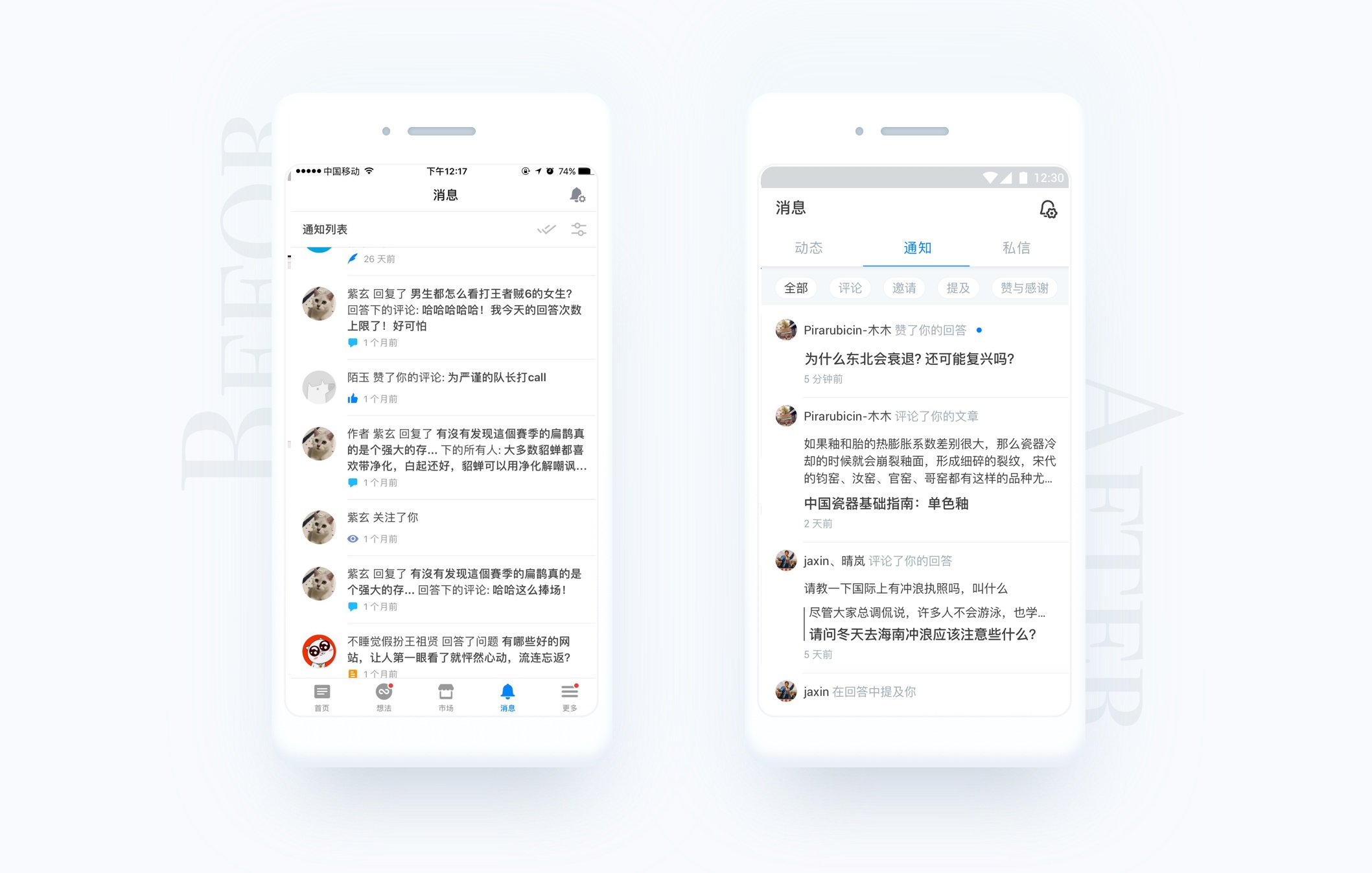 知乎的消息中心是自己使用起來最糾結(jié)的部分。消息的種類十分多,通過icon來做區(qū)分很不直觀。