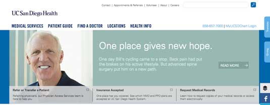 UC San Diego Health的網(wǎng)站選用的配色很吻合它嚴(yán)肅的內(nèi)容。