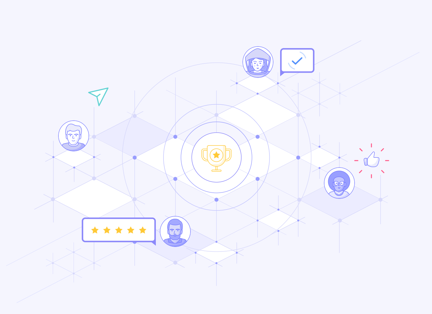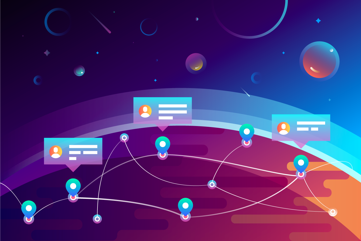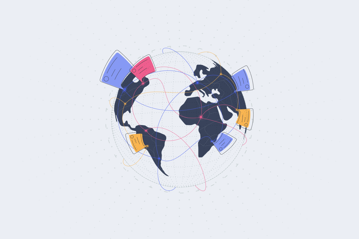 自定義的插畫常常會出現(xiàn)在著陸頁當中,作為重要的UI組件幫助用戶理解產品的功能和概念。所以,在首圖的位置使用插畫是相當普遍而有效的選擇。為了設計出更加有效的首圖插畫,Tubik團隊中的 Arthur Avakyan 和 Denis Boldyriev 也參與到首圖插畫的頭腦風暴和創(chuàng)意設計當中來。設計師嘗試將地球上不同區(qū)域的用戶相互連接的概念來進行設計。下面就是他們基于這一概念設計出來的插畫: