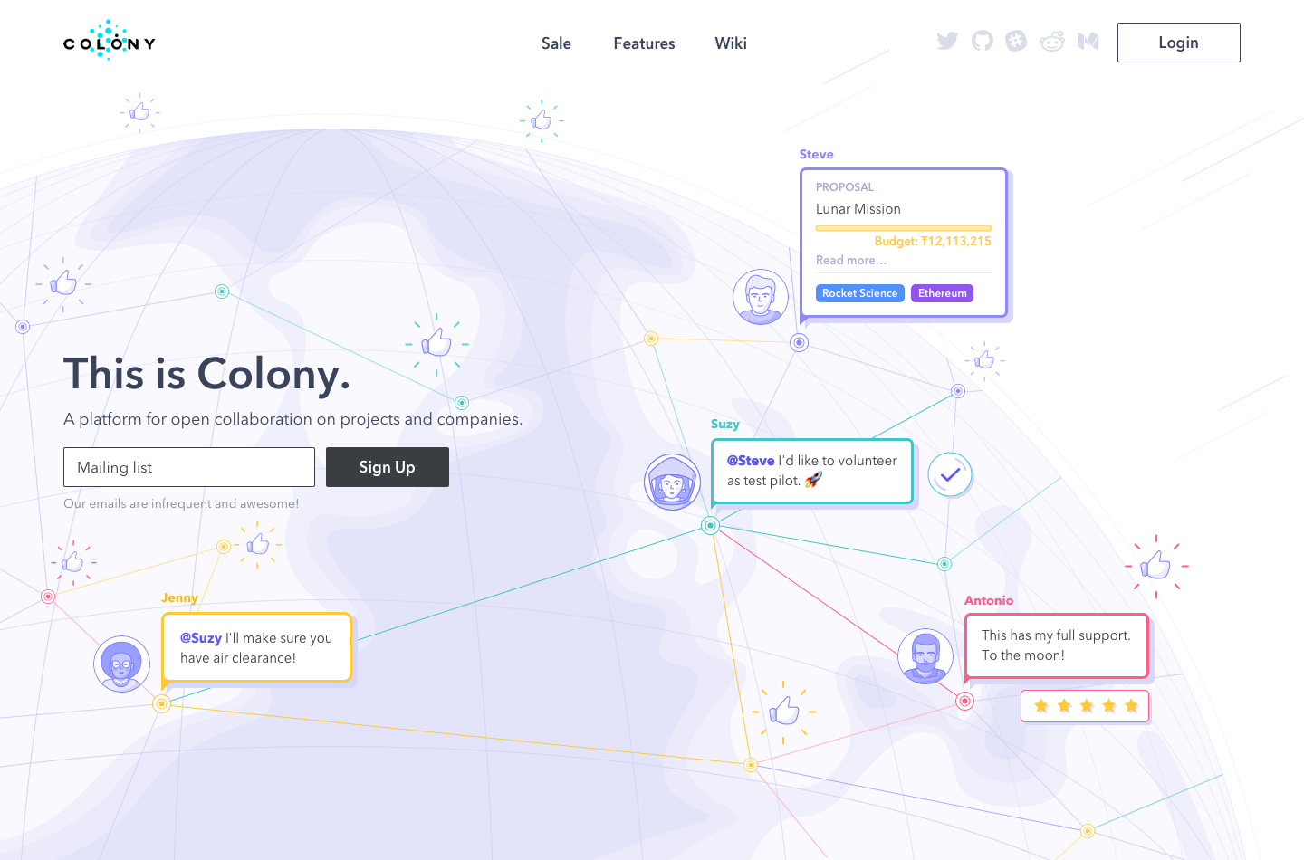 提出需求的是英國公司 Collectively Intelligent Limited,他們旗下有一個名為 Colony 的線上數(shù)字協(xié)作平臺。這個平臺的創(chuàng)建,是旨在幫助全世界不同國家和地區(qū)的人民通過它來共同創(chuàng)建公司。在社區(qū)中,不同的用戶可以圍繞一個目標進行合作,協(xié)同創(chuàng)造,共同管控資金,分享項目收入,而在此過程中這些人甚至都不一定需要認識對方,只需要目標一致,通過平臺協(xié)同即可。