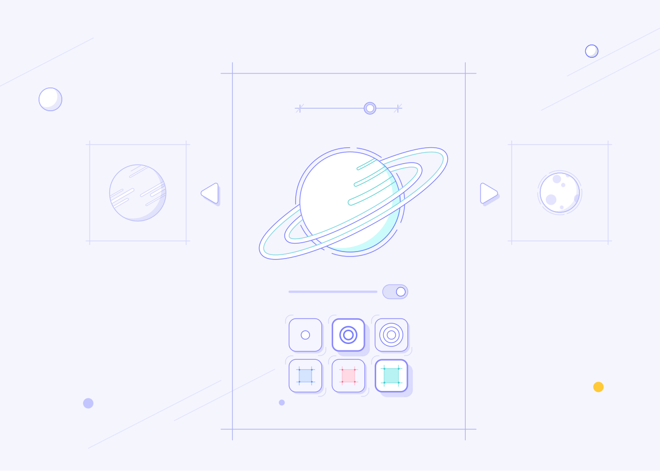 接下來,就是為了展示不同的功能而設計自定義插畫。這些插畫也會使用和首圖插畫一致的配色方案。這些插畫是為了簡明地展示產品功能而存在,以便用戶可以快速理解產品的功能和本質。此外,插畫還會搭配一些微文案,來幫助用戶了解這些功能的特點。而這個時候,還需要文案設計師參與進來。