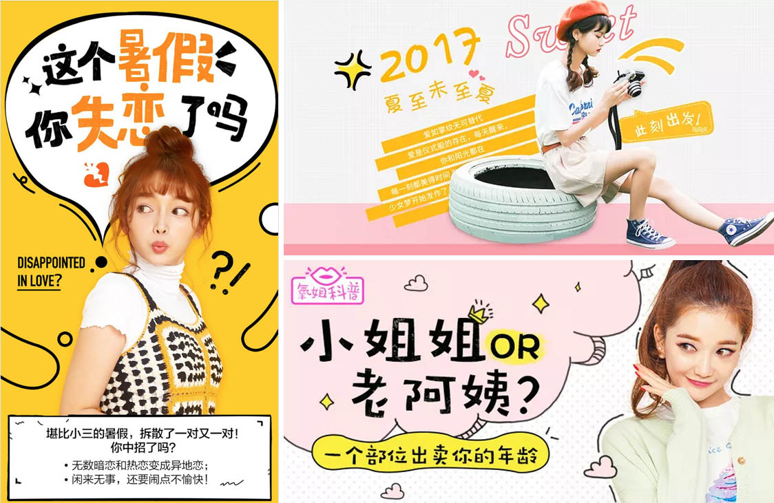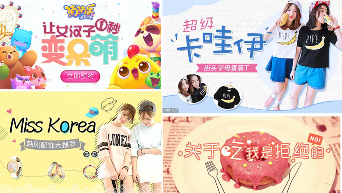 • 可愛風(fēng)格的banner最突出的特點就是他的字體,多采用少年字體、手寫字體、卡通字體。