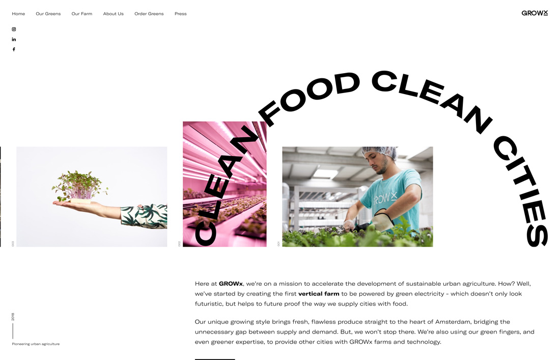 GrowX 這個(gè)網(wǎng)站將網(wǎng)站常見的區(qū)塊的概念打破了,讓白色的背景、干凈的圖片和一個(gè)拱形的標(biāo)題混合到一個(gè)共享的空間當(dāng)中。當(dāng)你向下滾動(dòng)的時(shí)候,頁面中的圖片會(huì)自然地左右流動(dòng),這種效果可以很好地促進(jìn)用戶往下滾動(dòng)瀏覽,也能強(qiáng)化視覺信息流。