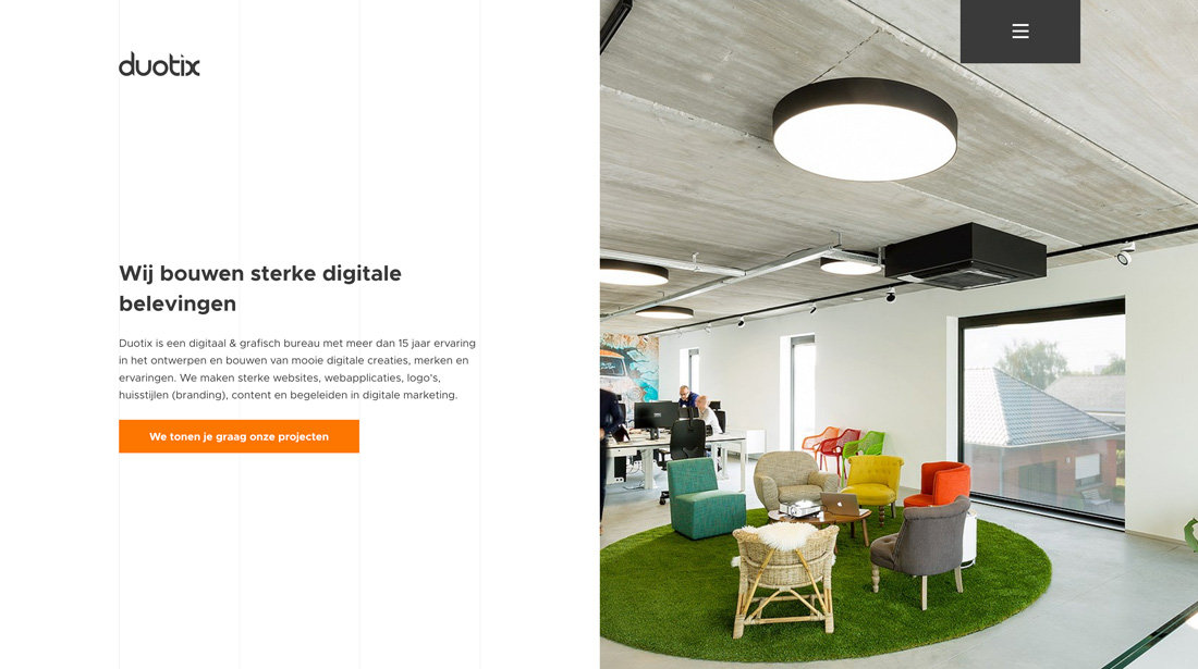 Duotix 在整個(gè)設(shè)計(jì)中使用留白來區(qū)分不同的內(nèi)容塊,并且每個(gè)內(nèi)容塊中都有各自的行為召喚按鈕。此外,在滾動(dòng)過程中,白色和彩色的背景不斷變化,刺激用戶不斷滾動(dòng)。