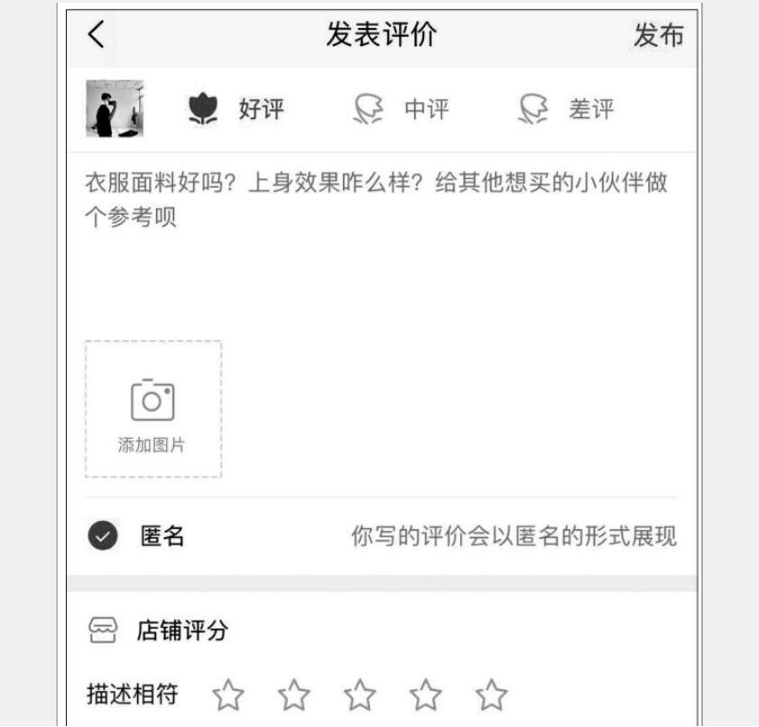 如圖所示,在訂單中進(jìn)行評(píng)論時(shí)主要有兩個(gè)維度:訂單整體和商品。從訂單整體上講,主要對(duì)訂單的物流服務(wù)、服務(wù)態(tài)度等進(jìn)行打分;從商品講,除了評(píng)分,就是詳細(xì)描述。評(píng)價(jià)的方式有圖片、文字等形式。