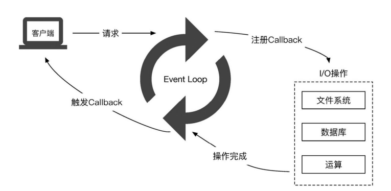 2009年第1版Node.js(只支持Linux和Mac0SX系統(tǒng))的發(fā)布是值得銘記的里程碑。Node.js的作者Ryan Dahl設(shè)計Node.js的靈感來自Flickr(一個提供網(wǎng)絡(luò)圖片服務(wù)的平臺)上的一個上傳進(jìn)度條,瀏覽器為了能夠獲取上傳文件的進(jìn)度而不得不頻繁地向服務(wù)器發(fā)起查詢請求。與這種方式相比,如果服務(wù)器能夠在文件上傳完畢之后主動推送一條消息給瀏覽器的話,會節(jié)省很多瀏覽器和網(wǎng)絡(luò)資源消耗。這種理念便是Node.js實(shí)現(xiàn)異步操作的核心Event Loop(事件驅(qū)動)的雛形,如圖1所示。