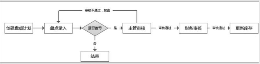 (3)若無(wú)盤盈或盤虧,盤點(diǎn)單直接結(jié)束。若有盤盈或盤虧,提交給主管審核,主管審核不通過(guò),對(duì)庫(kù)存不一致的庫(kù)位商品重新生成盤點(diǎn)單,進(jìn)行復(fù)盤;主管審核通過(guò)之后,提交給財(cái)務(wù)審核。