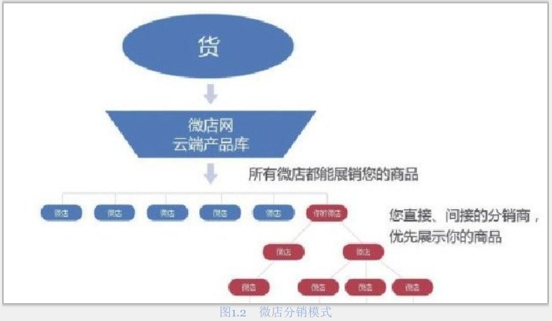(2)在推廣過(guò)程中,店長(zhǎng)可以介紹更多的人一起來(lái)開店,同學(xué)、朋友、親人都可以,一旦注冊(cè)成功,這些人就自動(dòng)成為你的分銷商,分銷商越多,就會(huì)有越多的人為你推廣和賺取傭金,如圖1.2所示。