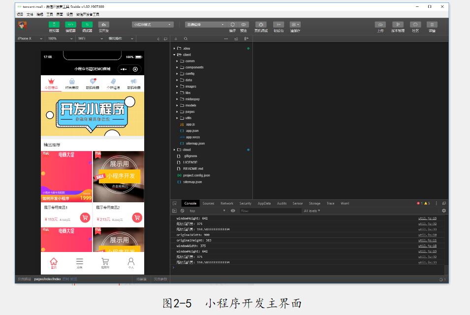 新建項(xiàng)目后,我們就可以看到小程序的開發(fā)主界面了,如圖2-5所示。