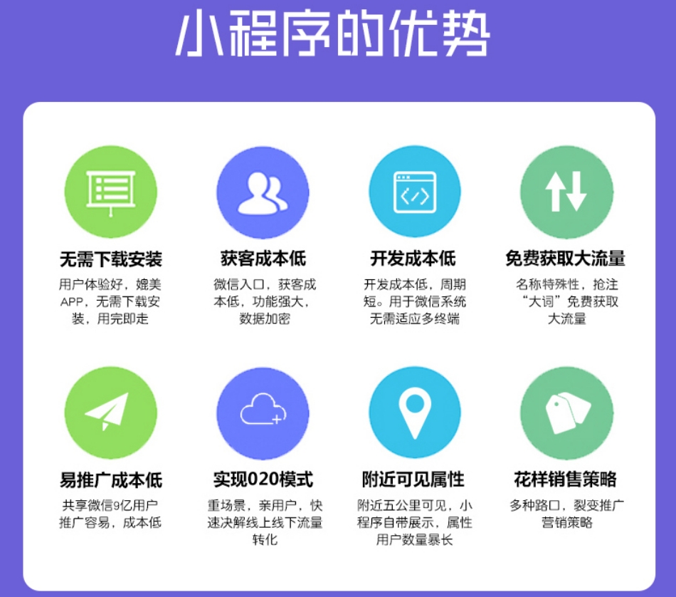 在商戶端,團(tuán)購網(wǎng)站完全是通過線下地推的方式幫助分散的商家一個(gè)個(gè)入網(wǎng)的,費(fèi)時(shí)費(fèi)力,如美團(tuán)在全國范圍內(nèi)的地推人員數(shù)量可能過萬;與此不同,小程序開發(fā)運(yùn)行的門檻較低,再加上微信平臺(tái)積累的近10億名用戶群體,能夠?qū)Ω鱾€(gè)商家形成強(qiáng)烈的吸引,讓他們主動(dòng)參與進(jìn)來,實(shí)現(xiàn)自助式上網(wǎng)。