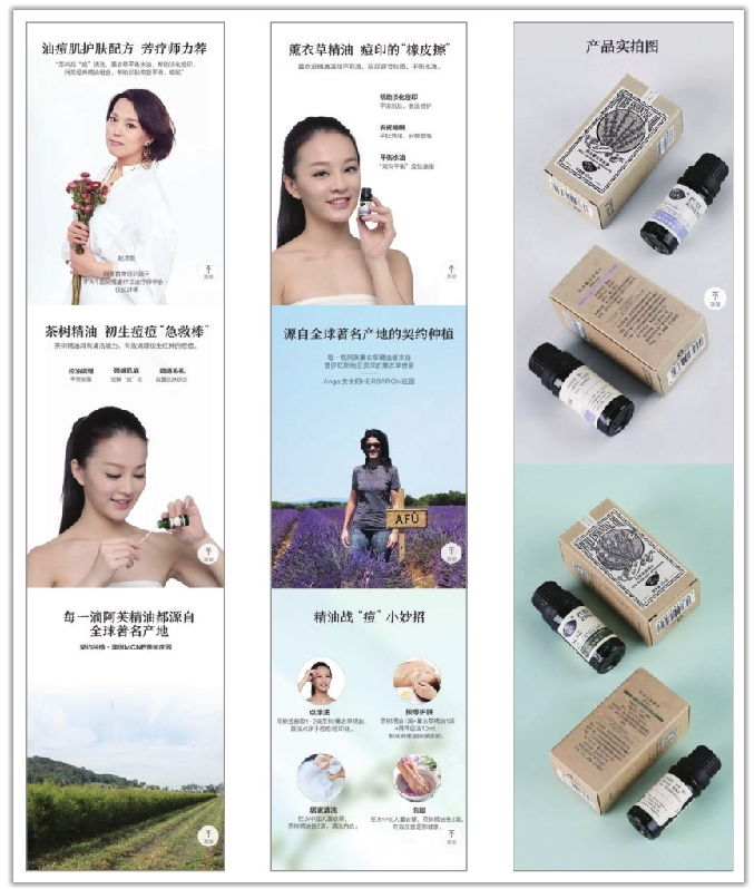 根據(jù)商品的特征和賣(mài)點(diǎn),制作賣(mài)點(diǎn)系列廣告圖,如圖7-16所示。對(duì)于該精油的功能、可以達(dá)到哪些功效等賣(mài)點(diǎn)擴(kuò)展放大為可以看得見(jiàn)的東西,給消費(fèi)者以實(shí)在的誘惑和美好的聯(lián)想,就好像已經(jīng)看到了用了這個(gè)商品之后沒(méi)有痘痘的生活。如此具有誘惑力的賣(mài)點(diǎn)圖會(huì)讓消費(fèi)者流連忘返,很容易達(dá)成了成交意向。在制作詳情頁(yè)時(shí),最核心的亮點(diǎn)就是商品的賣(mài)點(diǎn)。用有效的形式讓消費(fèi)者更懂得商品的優(yōu)勢(shì),用最直觀的方法將賣(mài)點(diǎn)變?yōu)橄M(fèi)者的利益點(diǎn),這就是在設(shè)計(jì)詳情頁(yè)時(shí)所需要重點(diǎn)體現(xiàn)的內(nèi)容。
